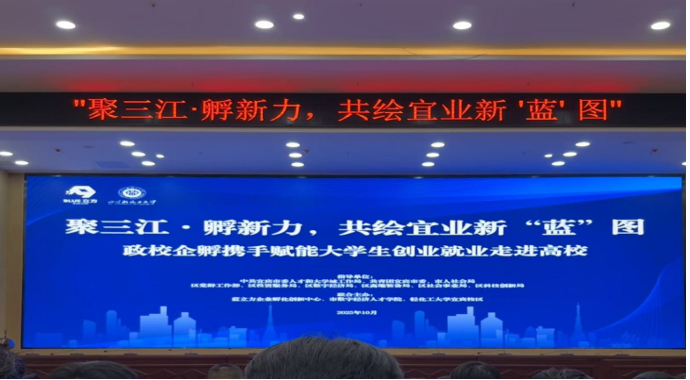 为助力宜宾“人才强市”战略,破解大学生就业信息差、创业资源散难题。2025年10月15日,由四川轻化工大学经济学院、宜宾蓝立方企业孵化创新中心等主办、市委人才和大学城工作局指导的政校企孵携手赋能活动在宜宾校区正式启动。
