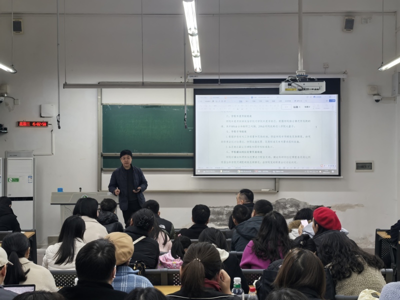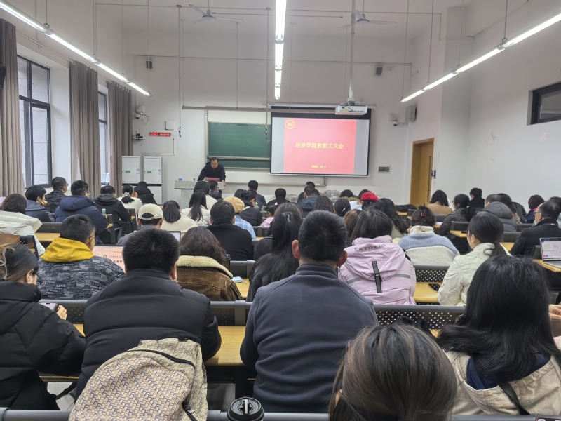 2025年12月4日下午,经济学院在宜宾校区A4-101教室召开教职工大会。与会人员为学院全体教职工。会议由学院党委书记陈子曦主持。