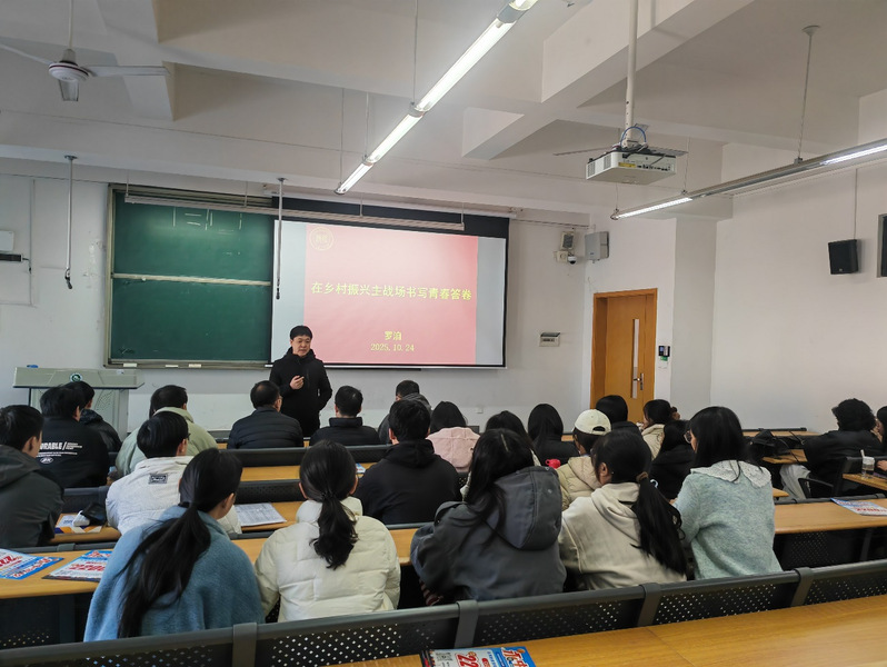 2025年10月24日,经济学院院长罗洎教授以在乡村振兴主战场书写青春答卷为主题,为2025级农村发展专业全体研究生讲授专题党课。